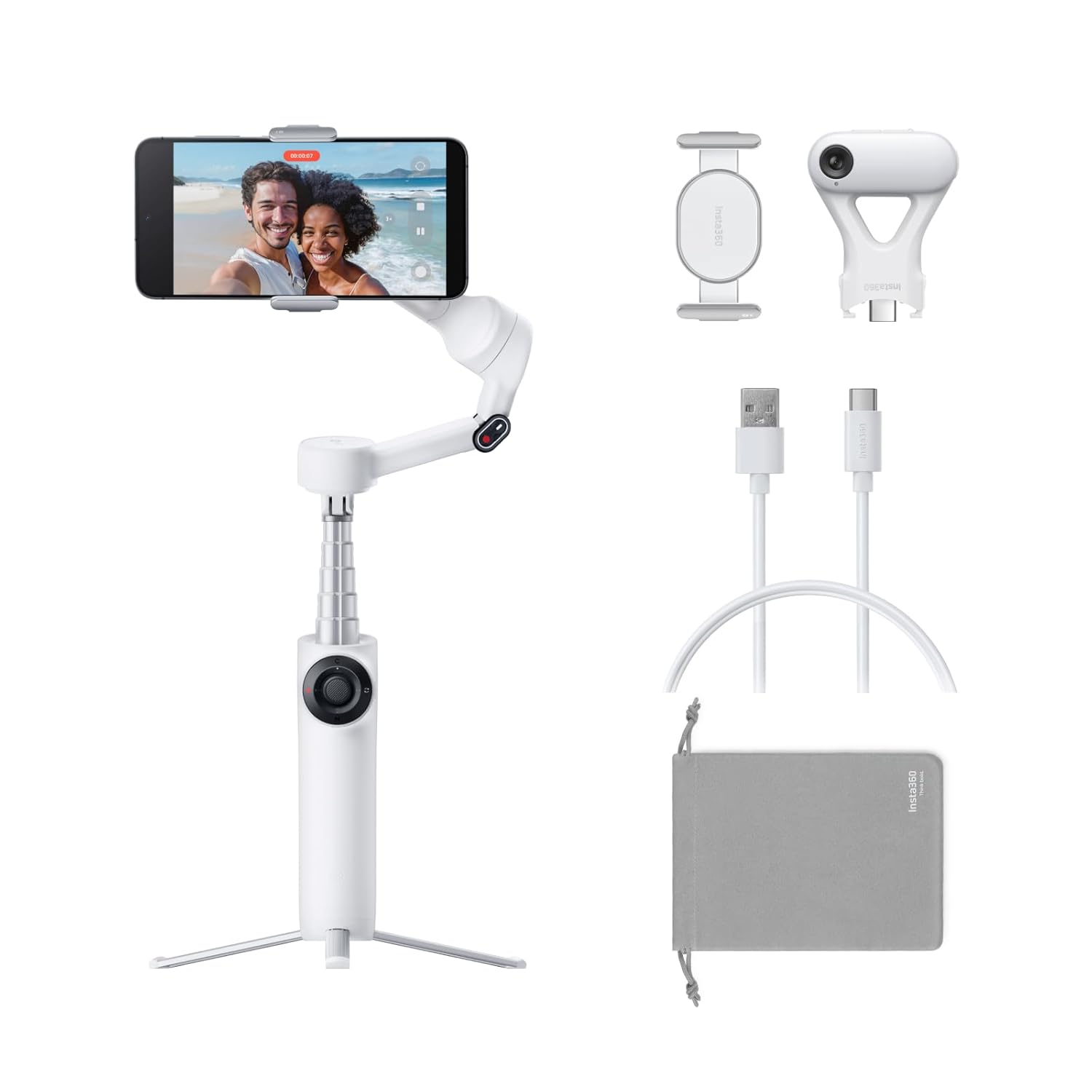 Miss Cool Insta360 Flow Plus AI Tracker Bundle White - Foldable Phone Gimbal, AI Tracking with Any App, Multi-Person Tracking, Built-in Tripod, Remote Control, iPhone/Android Stabilizer, Travel & Vlog